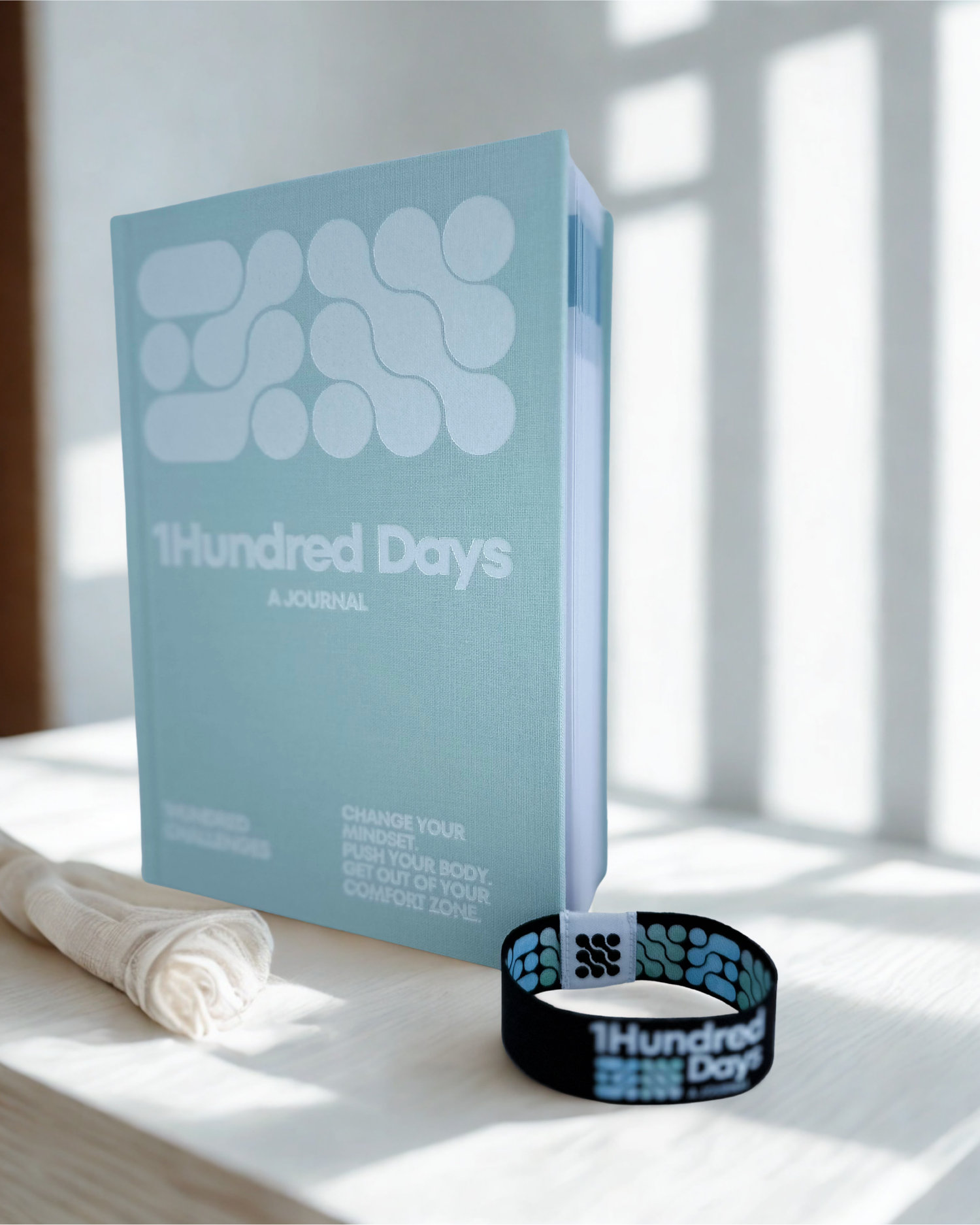 It comes in a sleek black box with an accountability wristband, and features 100 guided challenges to strengthen your mindset and support your journey, one day at a time.